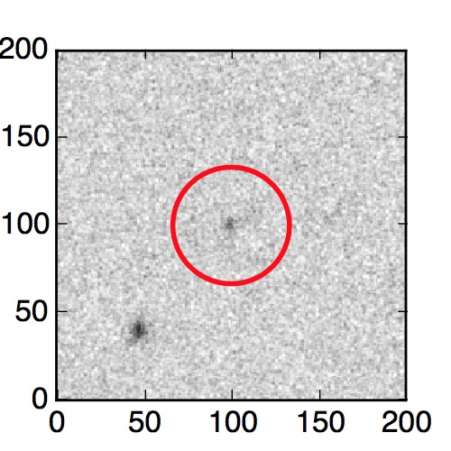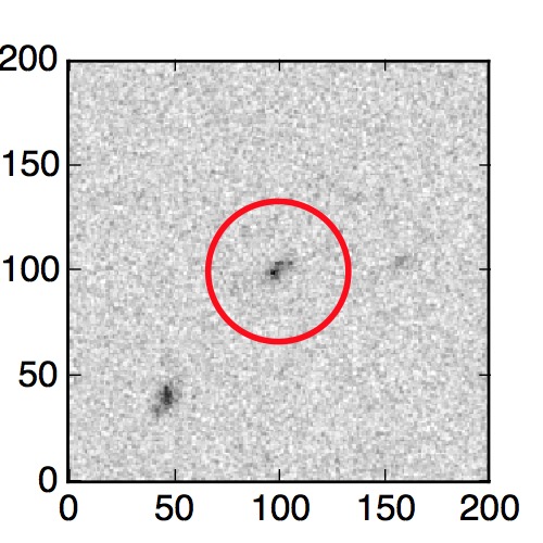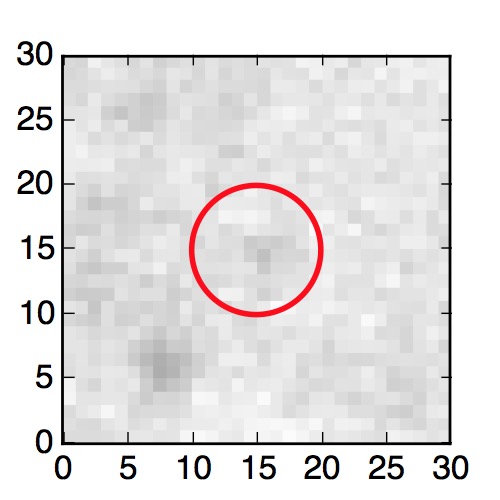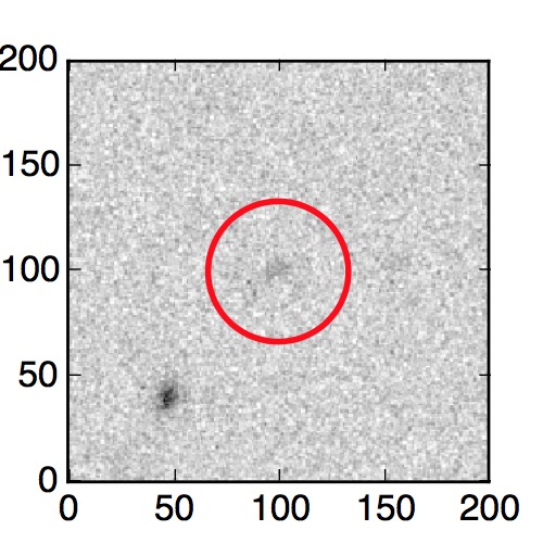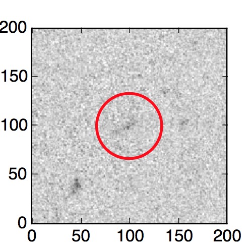 The red circle in the various panels is 1" in radius. The images are 6"x6".