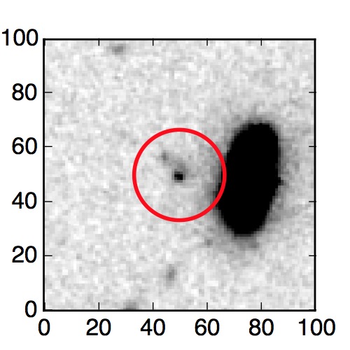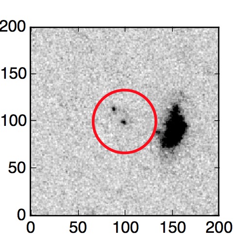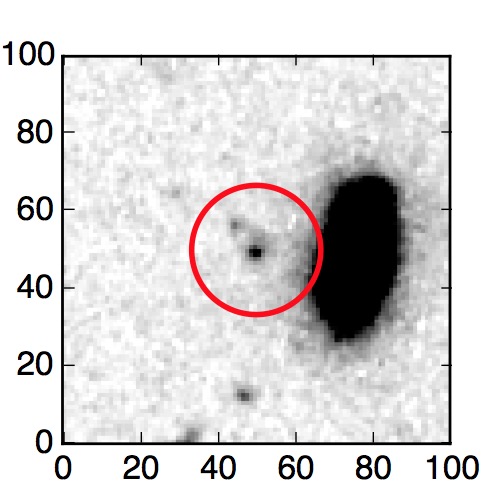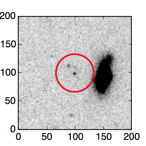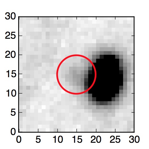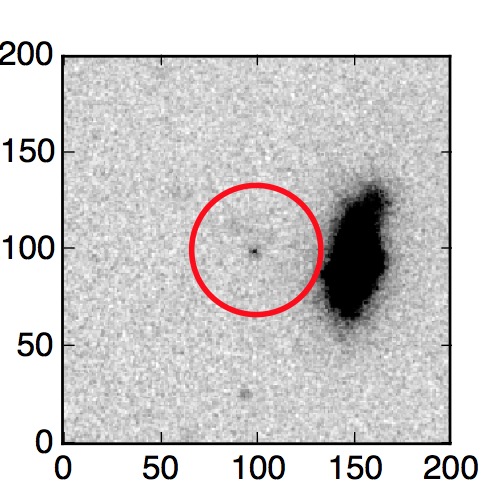 The red circle in the various panels is 1" in radius. The images are 6"x6".
