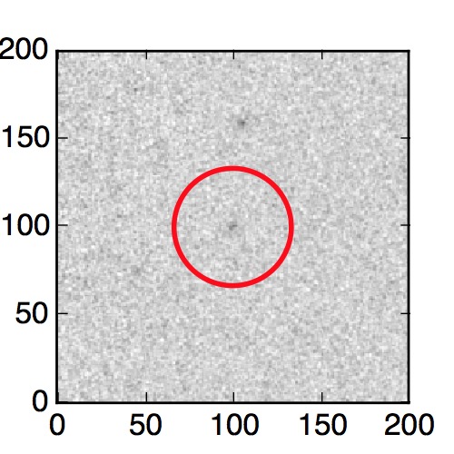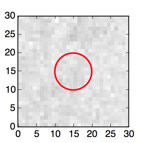 The red circle in the various panels is 1" in radius. The images are 6"x6".
