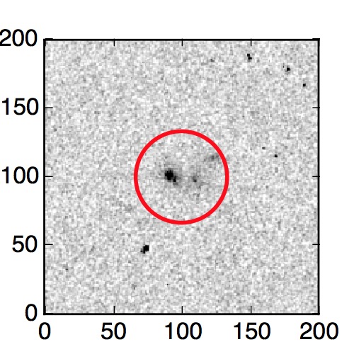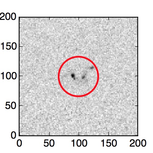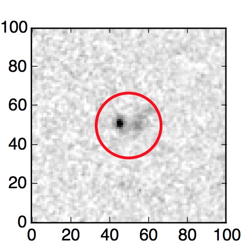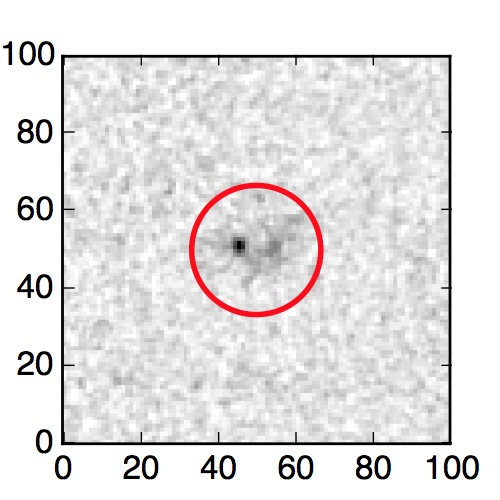 The red circle in the various panels is 1" in radius. The images are 6"x6".