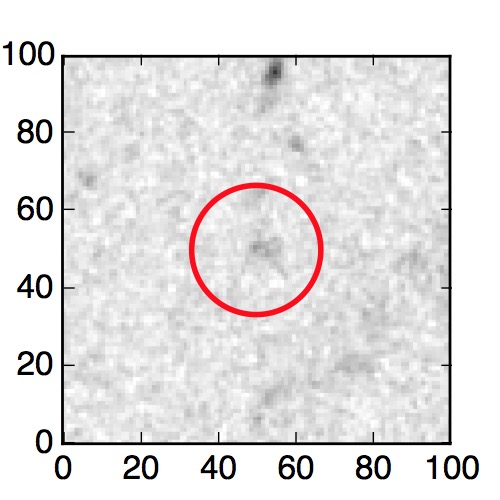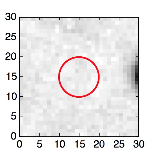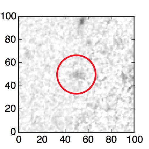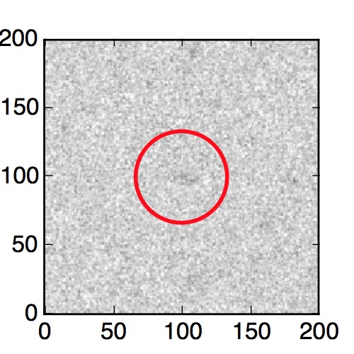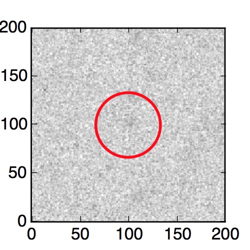 The red circle in the various panels is 1" in radius. The images are 6"x6".