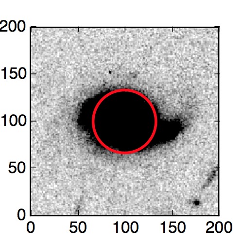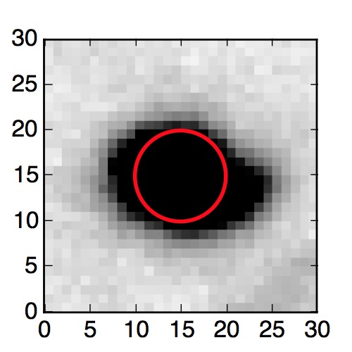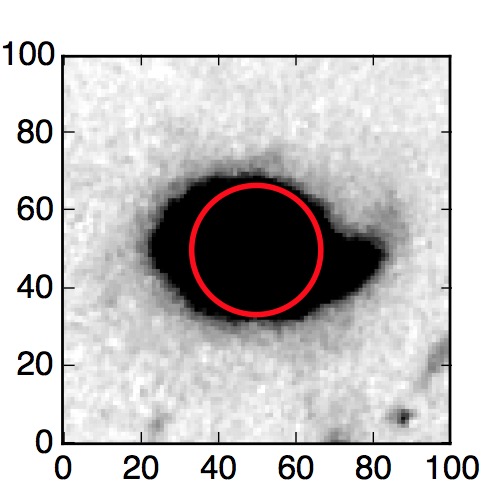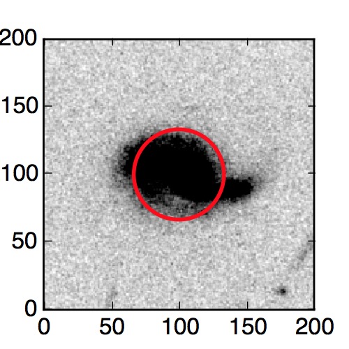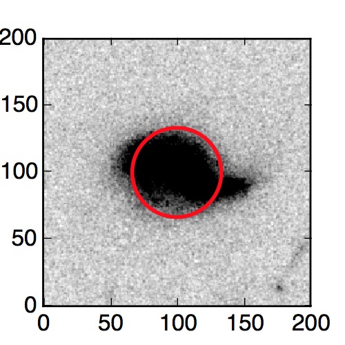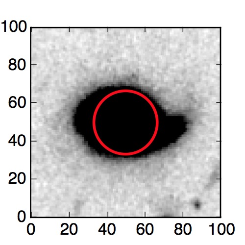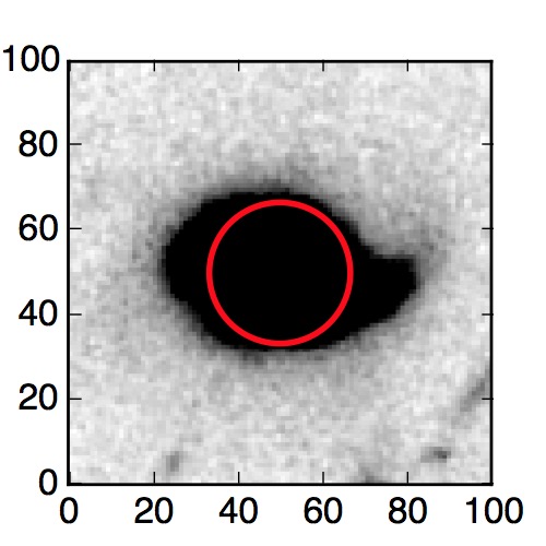 The red circle in the various panels is 1" in radius. The images are 6"x6".