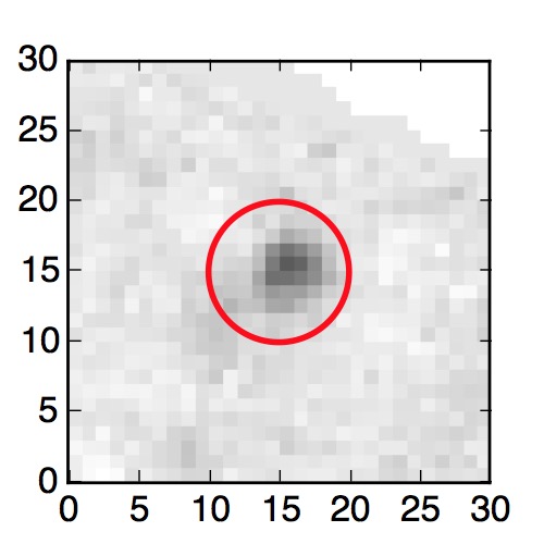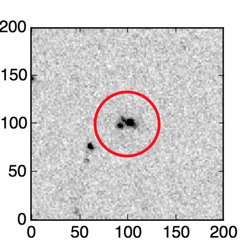 The red circle in the various panels is 1" in radius. The images are 6"x6".