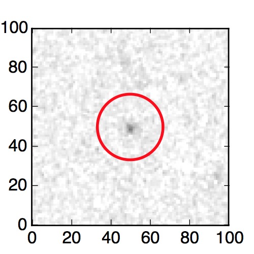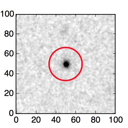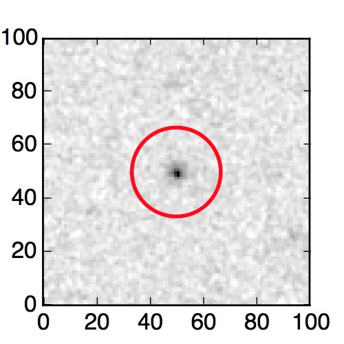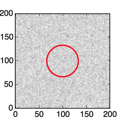 The red circle in the various panels is 1" in radius. The images are 6"x6".