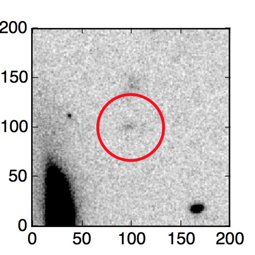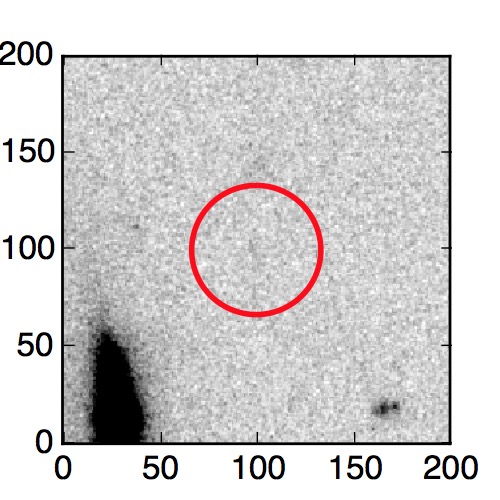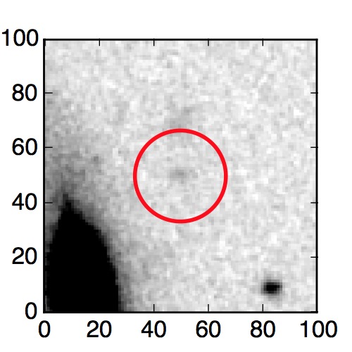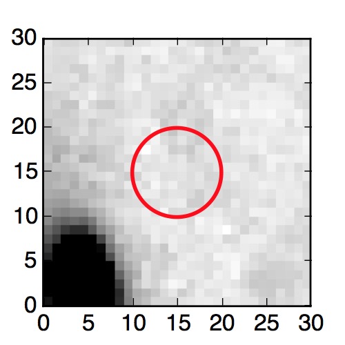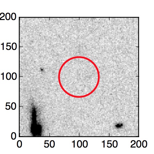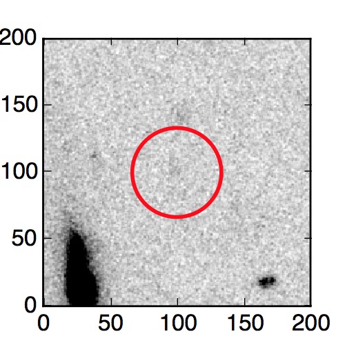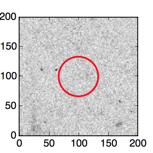 The red circle in the various panels is 1" in radius. The images are 6"x6".