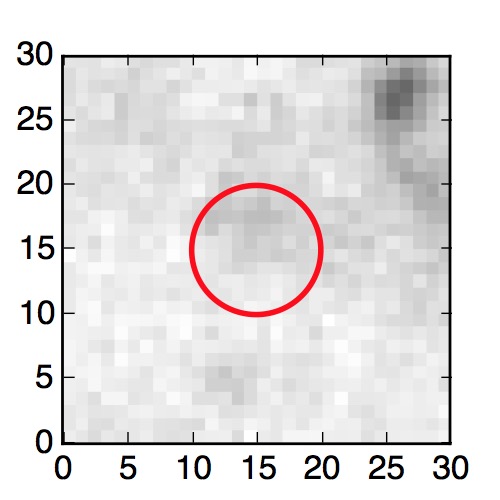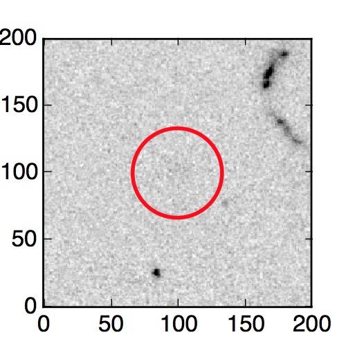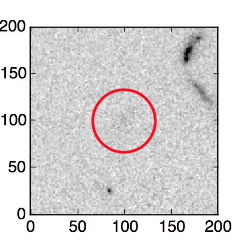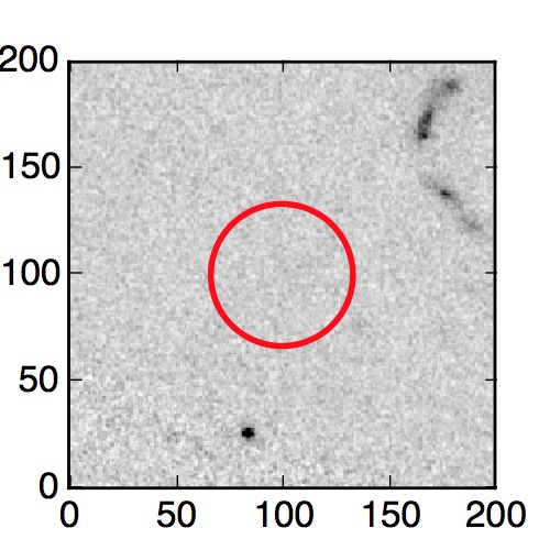 The red circle in the various panels is 1" in radius. The images are 6"x6".