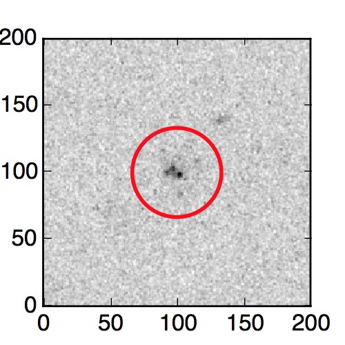 The red circle in the various panels is 1" in radius. The images are 6"x6".