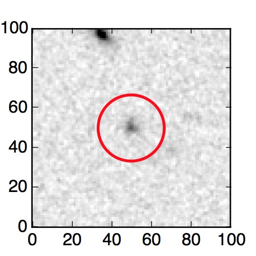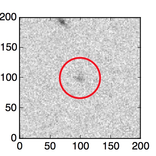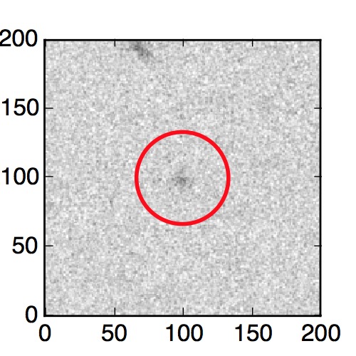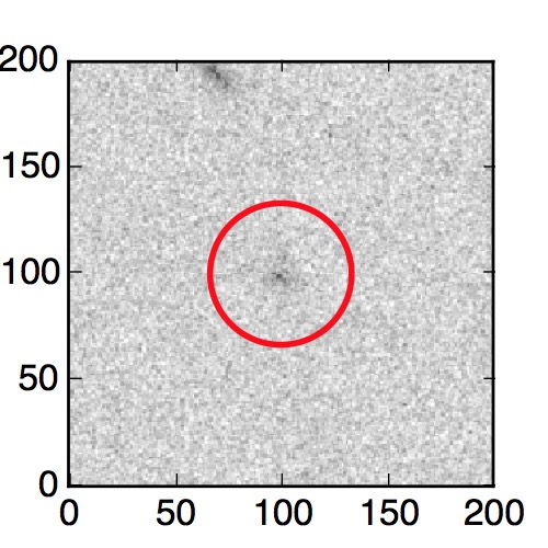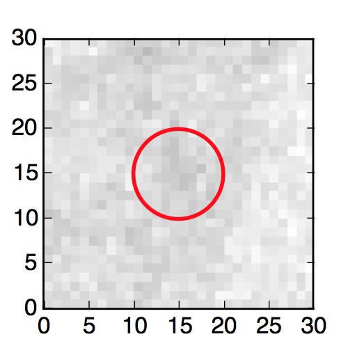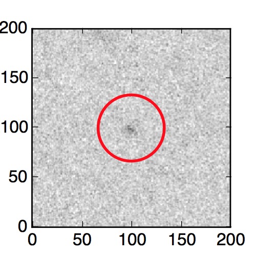 The red circle in the various panels is 1" in radius. The images are 6"x6".