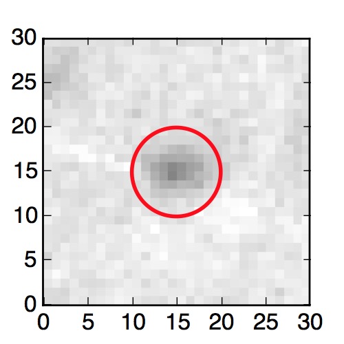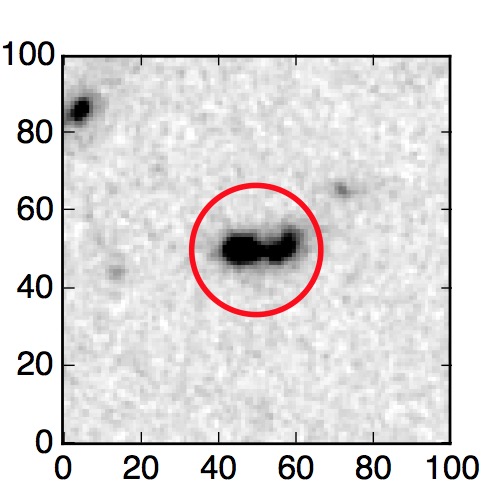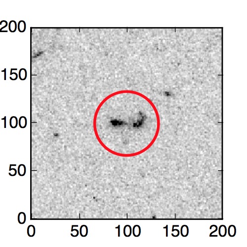 The red circle in the various panels is 1" in radius. The images are 6"x6".