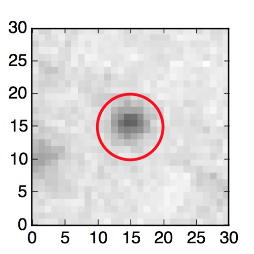 The red circle in the various panels is 1" in radius. The images are 6"x6".