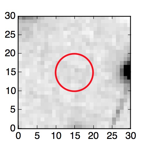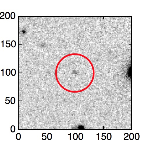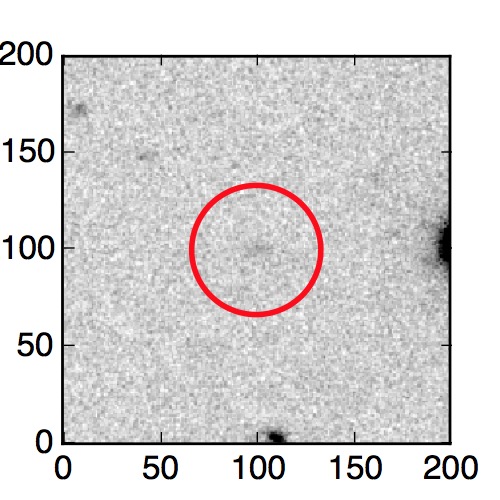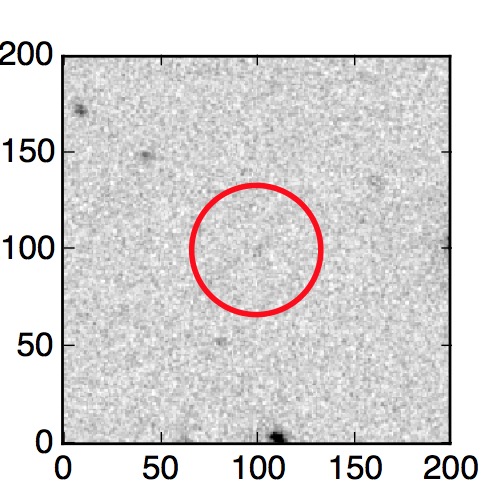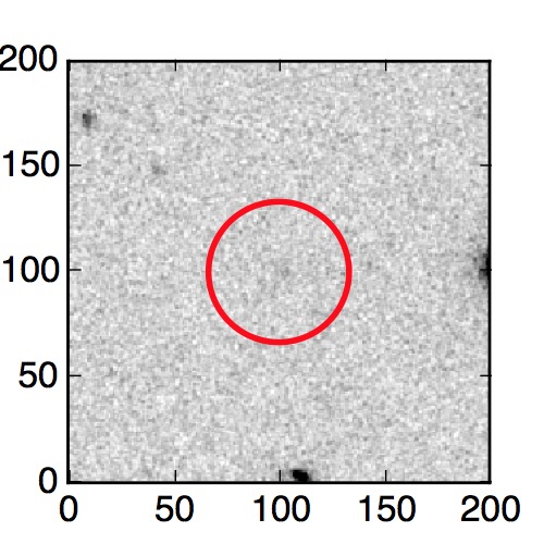 The red circle in the various panels is 1" in radius. The images are 6"x6".