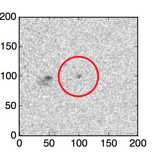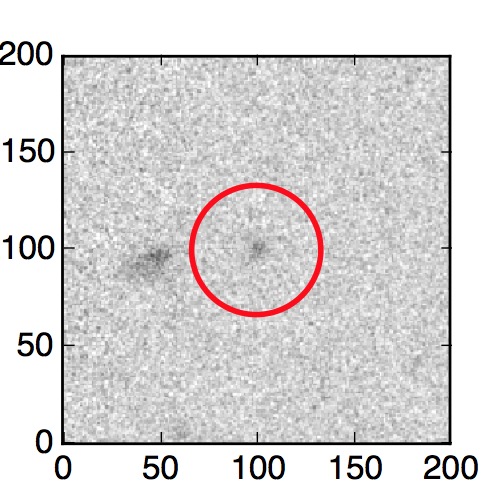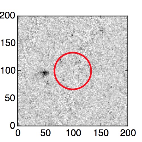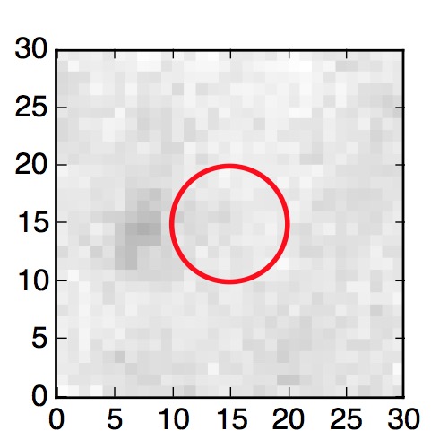 The red circle in the various panels is 1" in radius. The images are 6"x6".