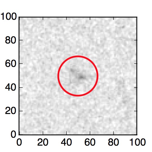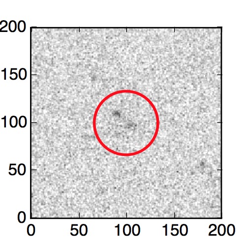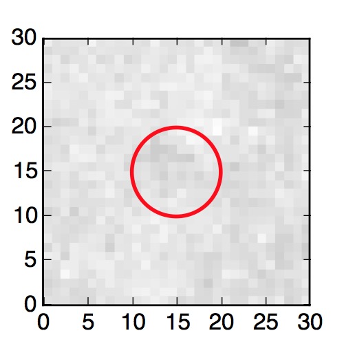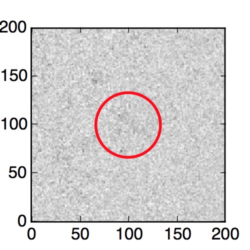 The red circle in the various panels is 1" in radius. The images are 6"x6".