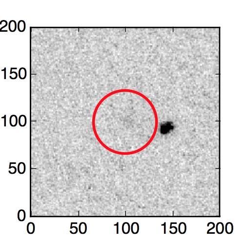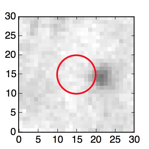 The red circle in the various panels is 1" in radius. The images are 6"x6".