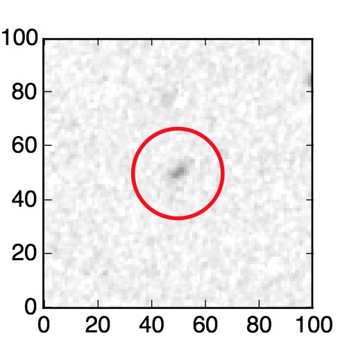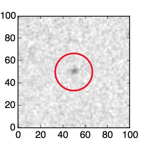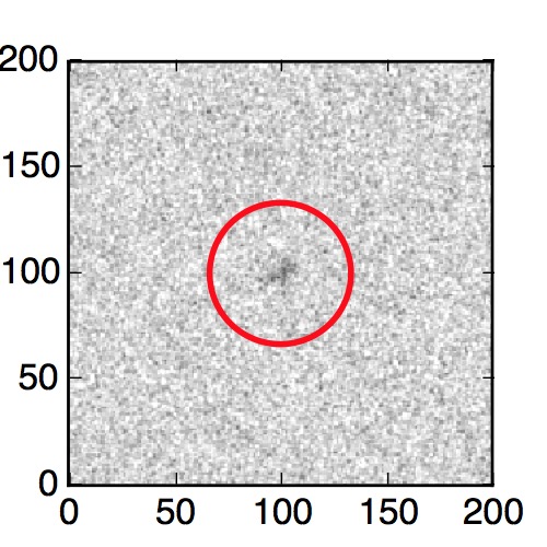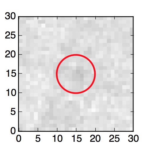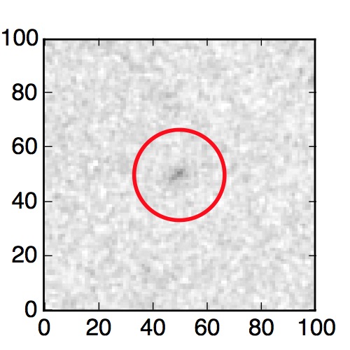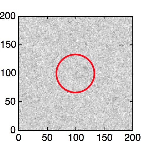 The red circle in the various panels is 1" in radius. The images are 6"x6".