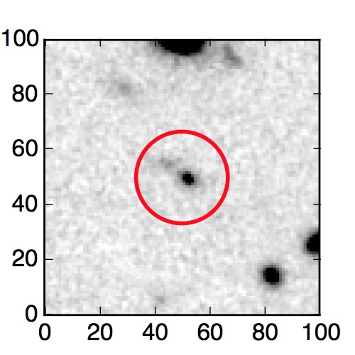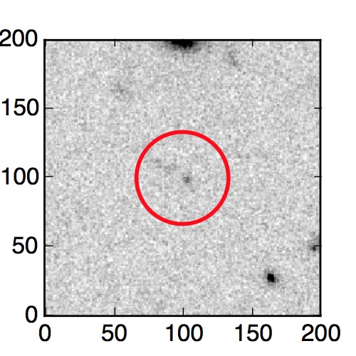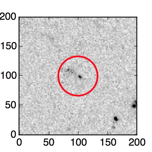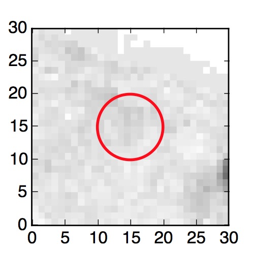 The red circle in the various panels is 1" in radius. The images are 6"x6".