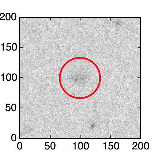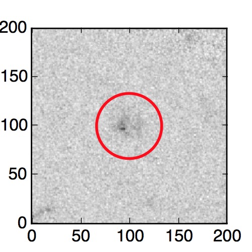 The red circle in the various panels is 1" in radius. The images are 6"x6".
