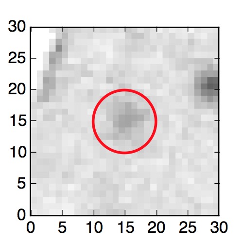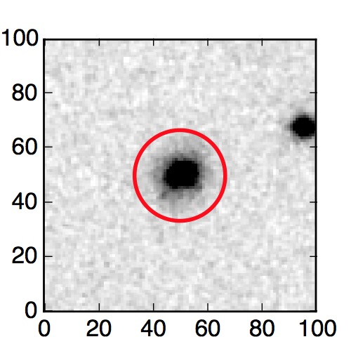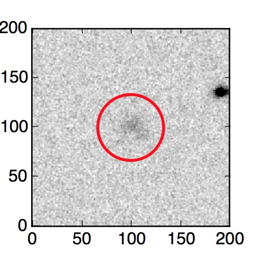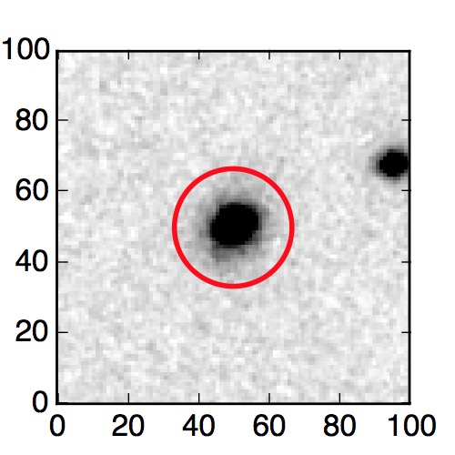 The red circle in the various panels is 1" in radius. The images are 6"x6".