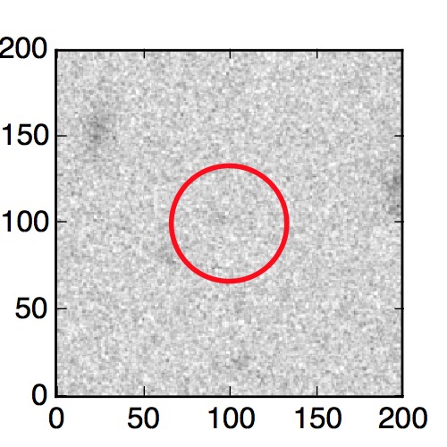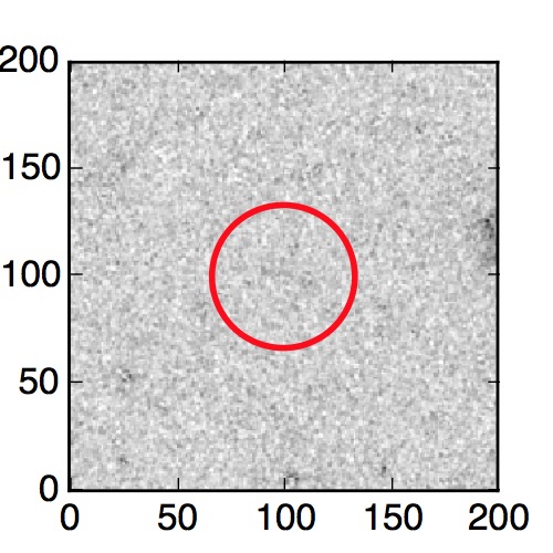 The red circle in the various panels is 1" in radius. The images are 6"x6".