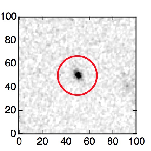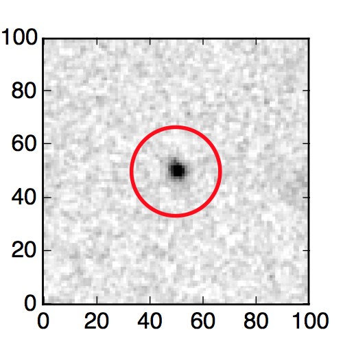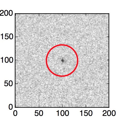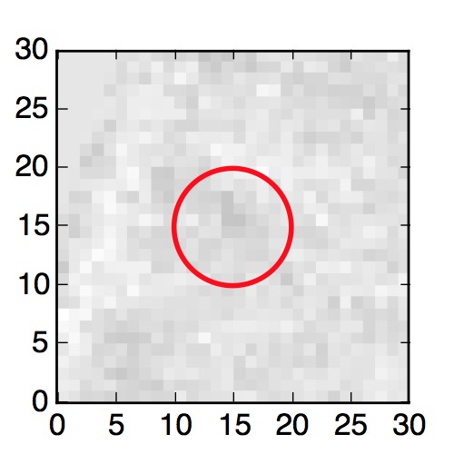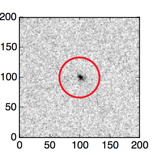 The red circle in the various panels is 1" in radius. The images are 6"x6".