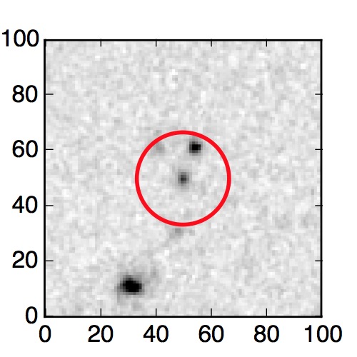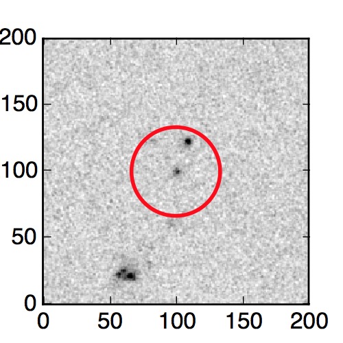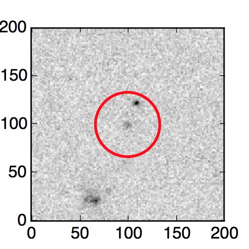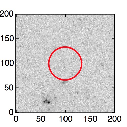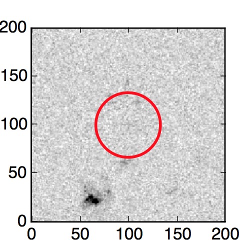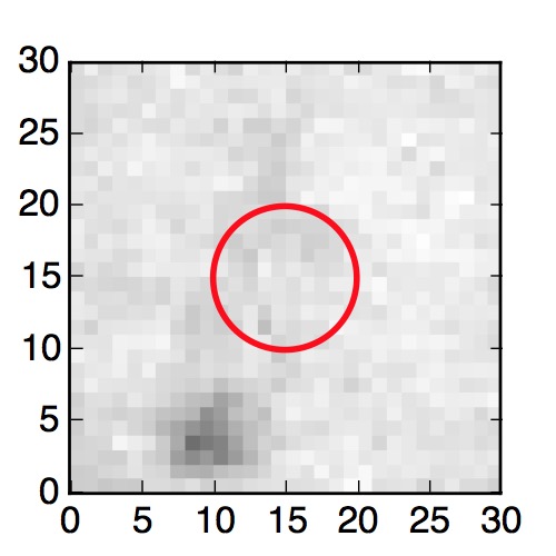 The red circle in the various panels is 1" in radius. The images are 6"x6".
