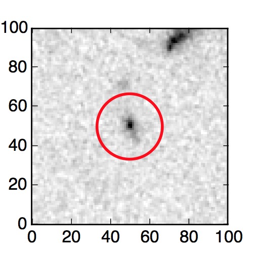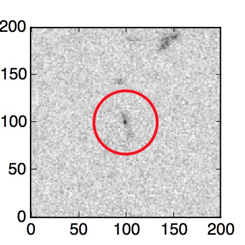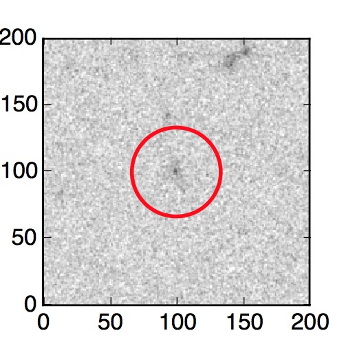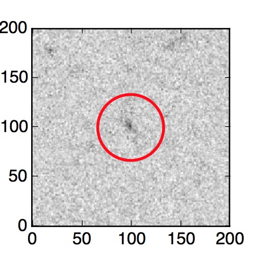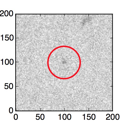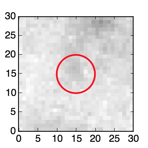 The red circle in the various panels is 1" in radius. The images are 6"x6".