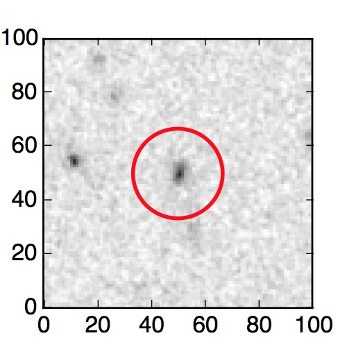 The red circle in the various panels is 1" in radius. The images are 6"x6".