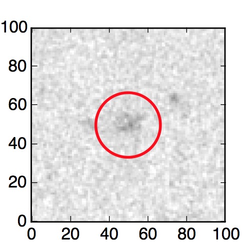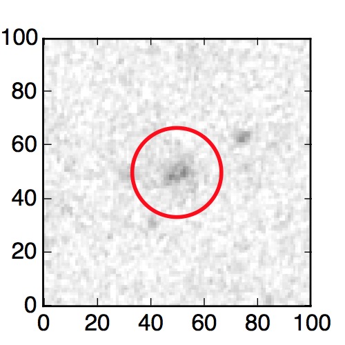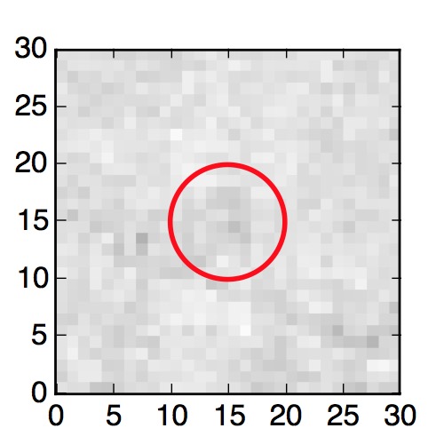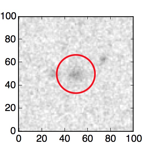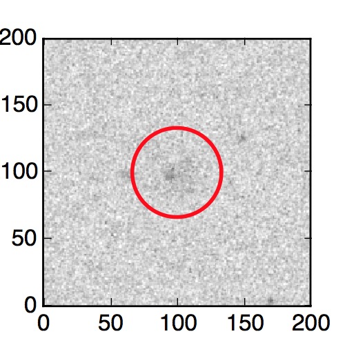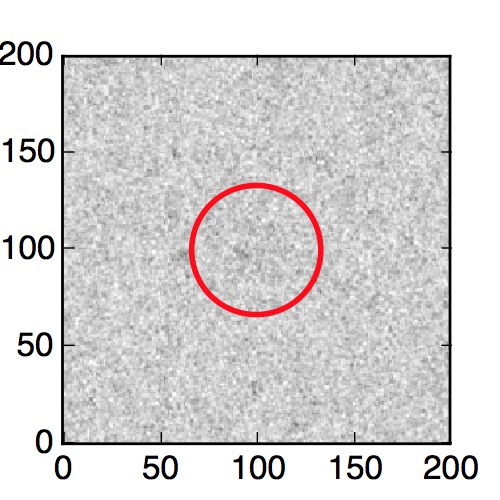 The red circle in the various panels is 1" in radius. The images are 6"x6".