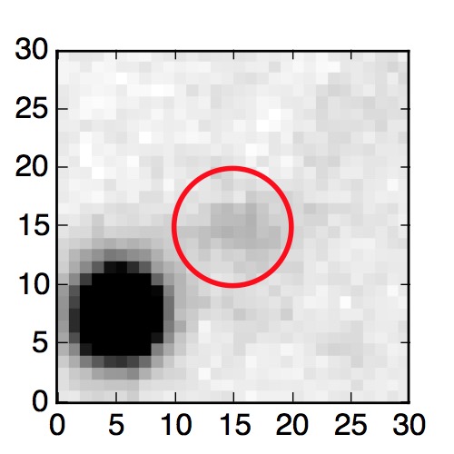 The red circle in the various panels is 1" in radius. The images are 6"x6".