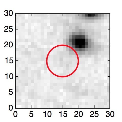 The red circle in the various panels is 1" in radius. The images are 6"x6".