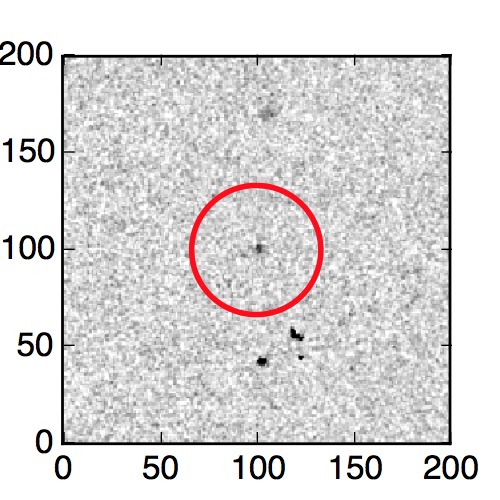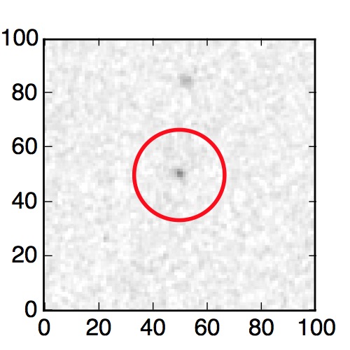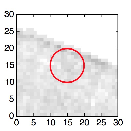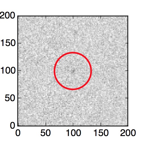 The red circle in the various panels is 1" in radius. The images are 6"x6".