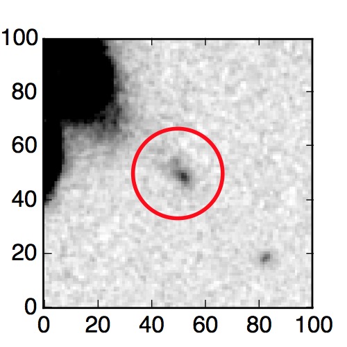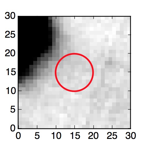 The red circle in the various panels is 1" in radius. The images are 6"x6".