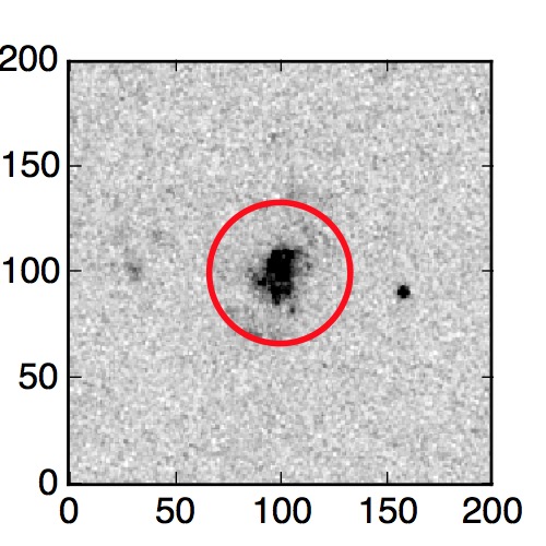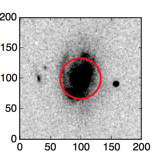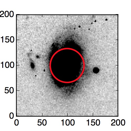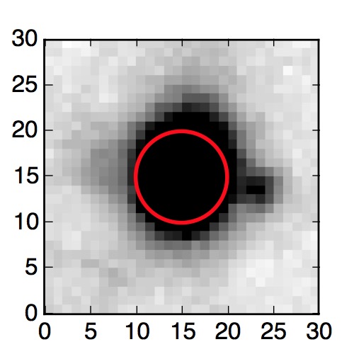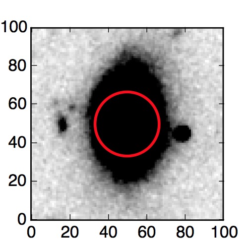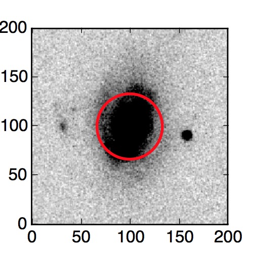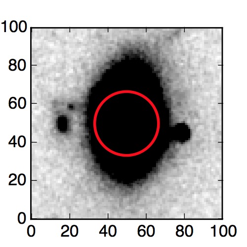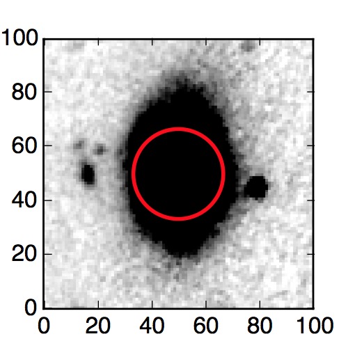 The red circle in the various panels is 1" in radius. The images are 6"x6".