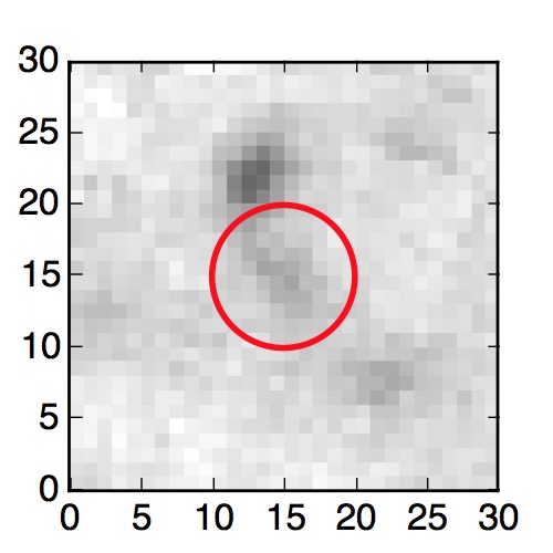 The red circle in the various panels is 1" in radius. The images are 6"x6".