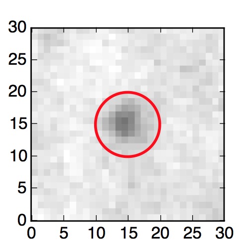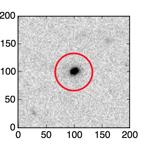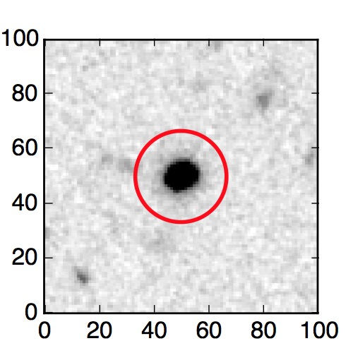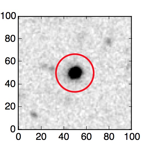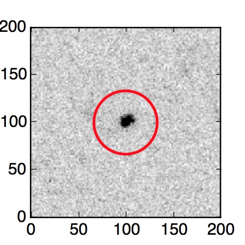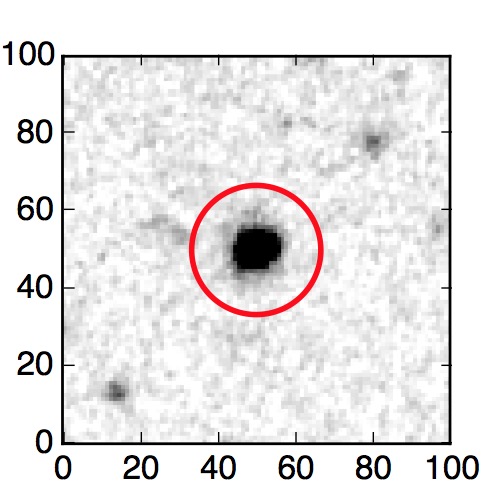 The red circle in the various panels is 1" in radius. The images are 6"x6".