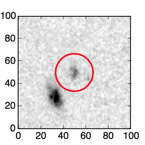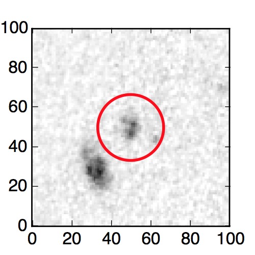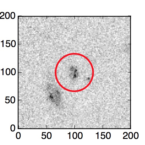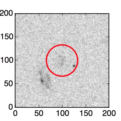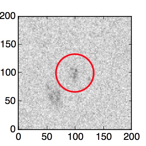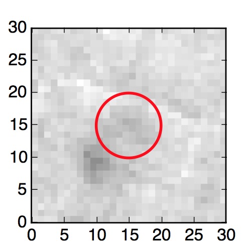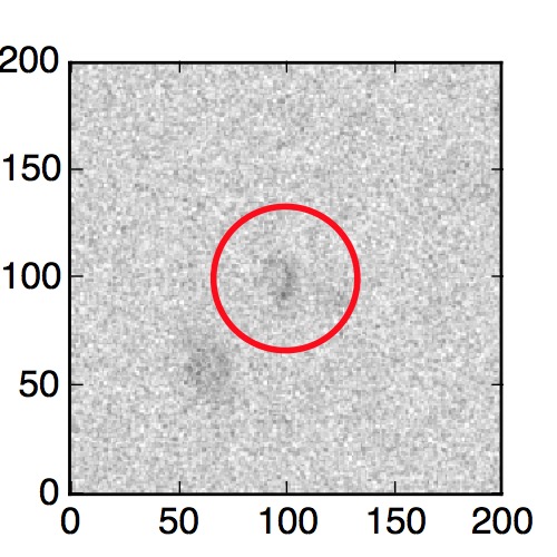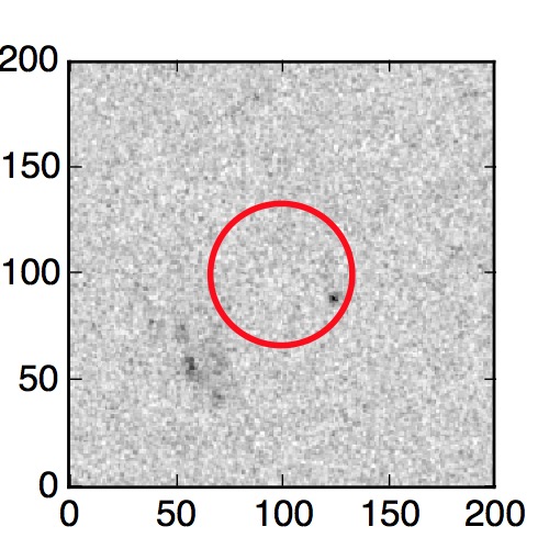 The red circle in the various panels is 1" in radius. The images are 6"x6".