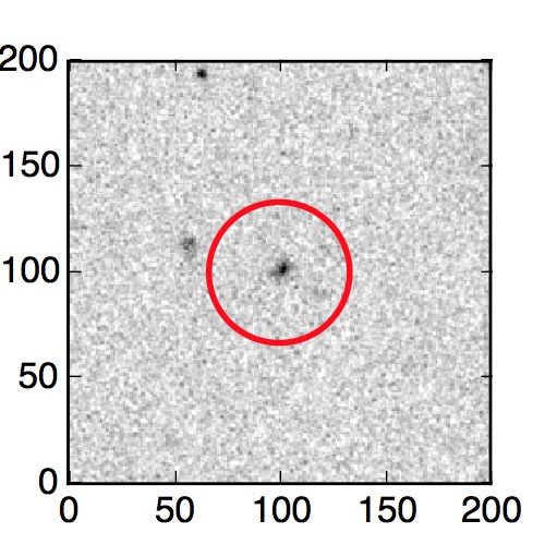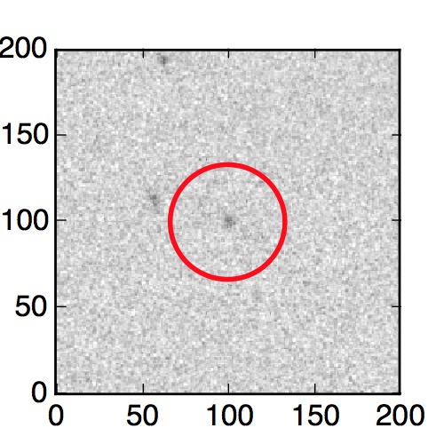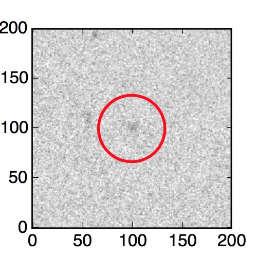 The red circle in the various panels is 1" in radius. The images are 6"x6".