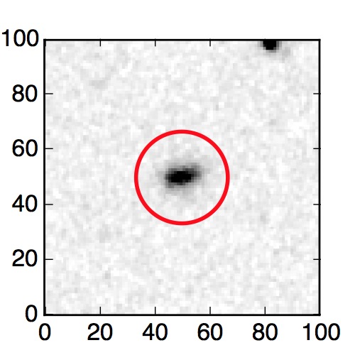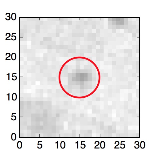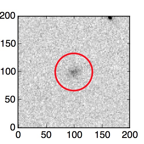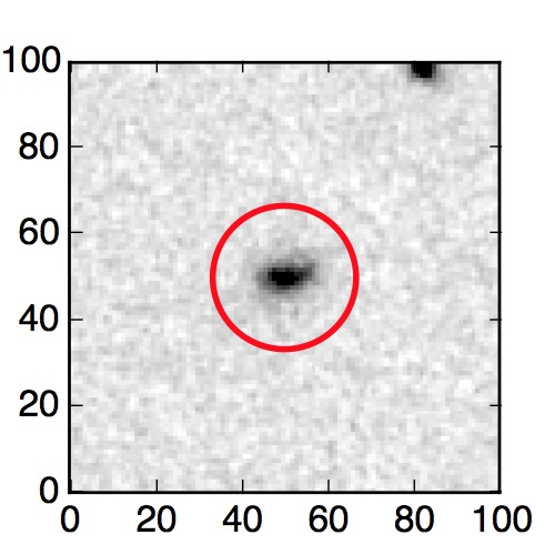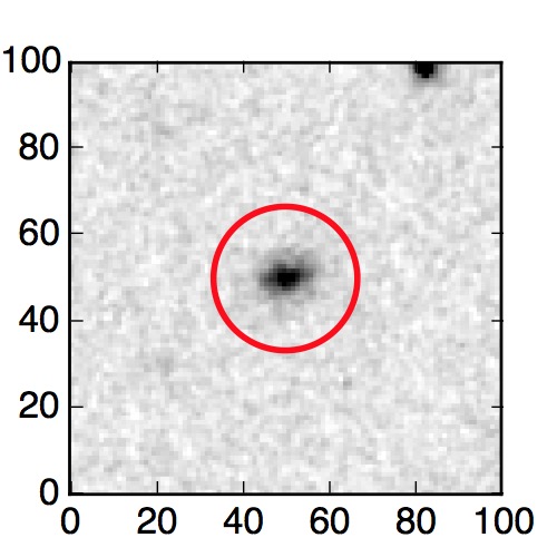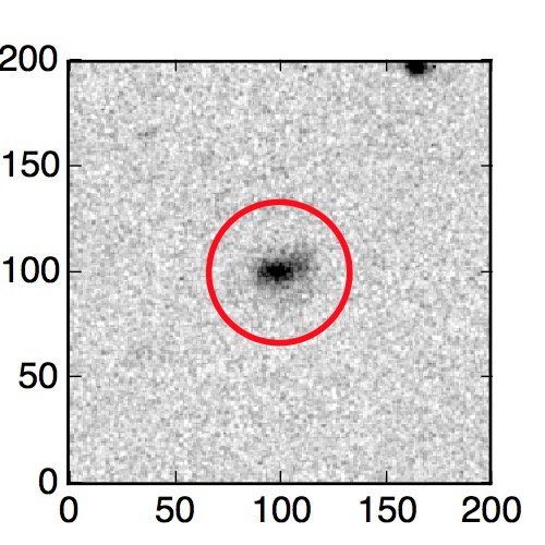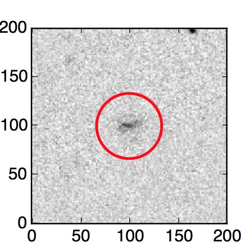 The red circle in the various panels is 1" in radius. The images are 6"x6".