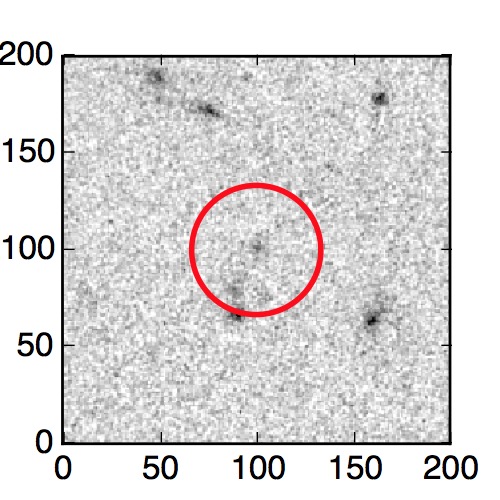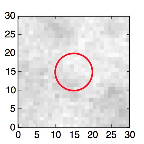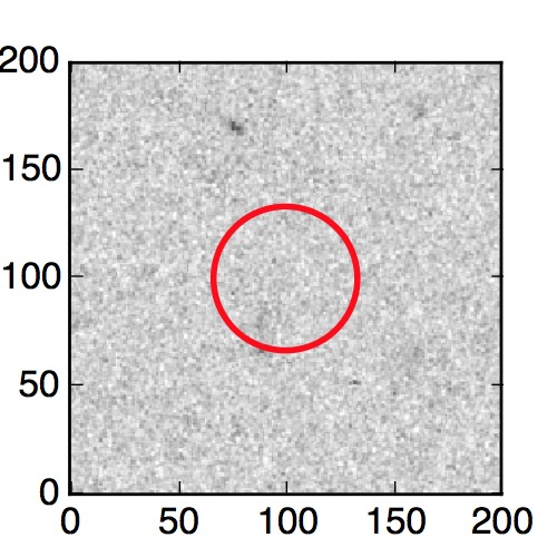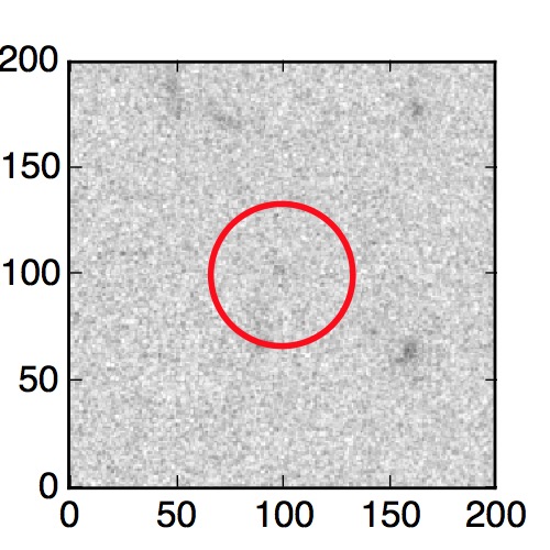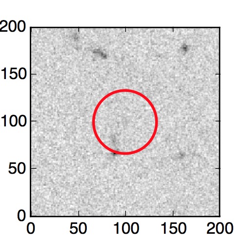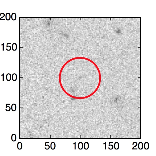 The red circle in the various panels is 1" in radius. The images are 6"x6".