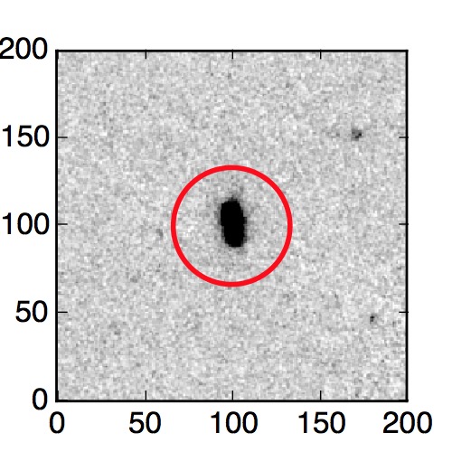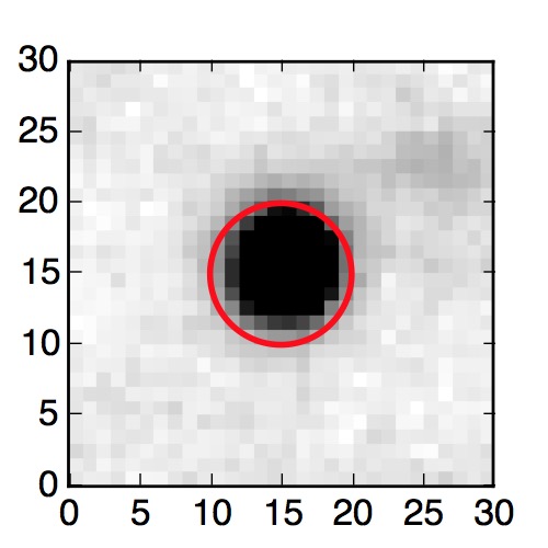 The red circle in the various panels is 1" in radius. The images are 6"x6".