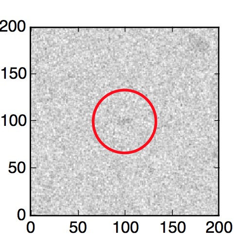 The red circle in the various panels is 1" in radius. The images are 6"x6".