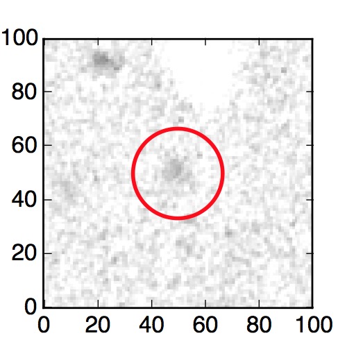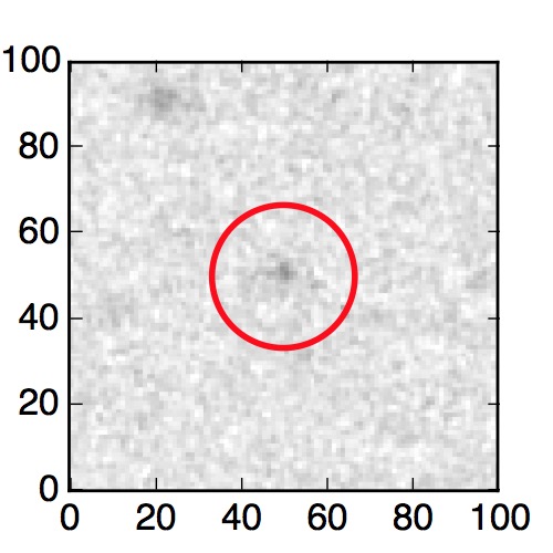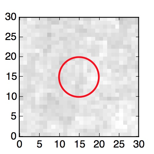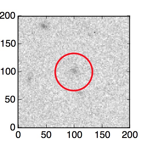 The red circle in the various panels is 1" in radius. The images are 6"x6".