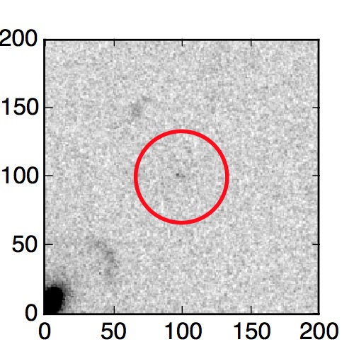 The red circle in the various panels is 1" in radius. The images are 6"x6".
