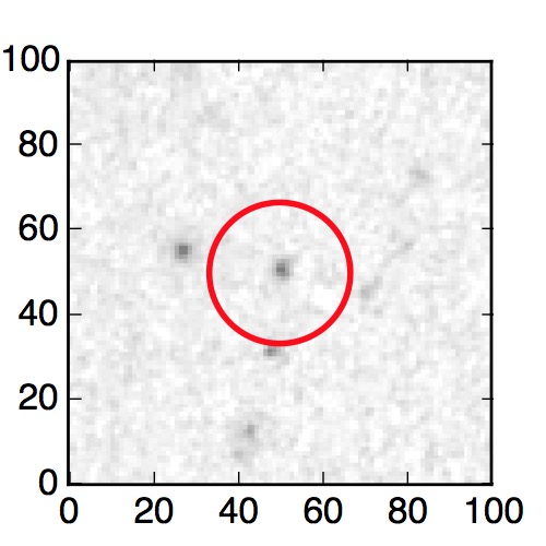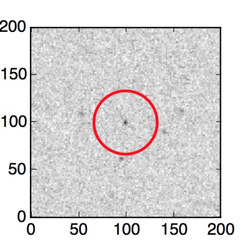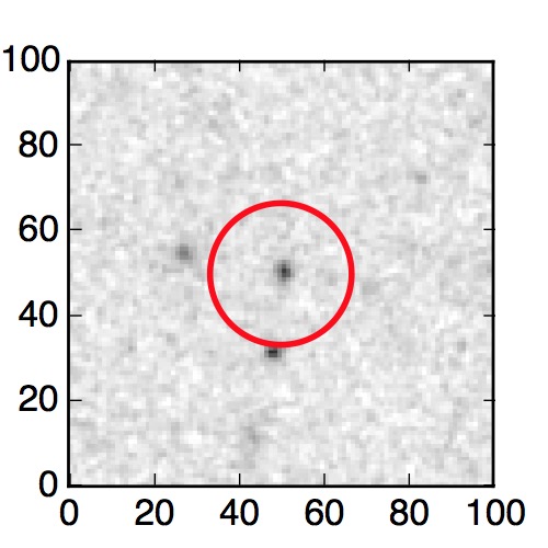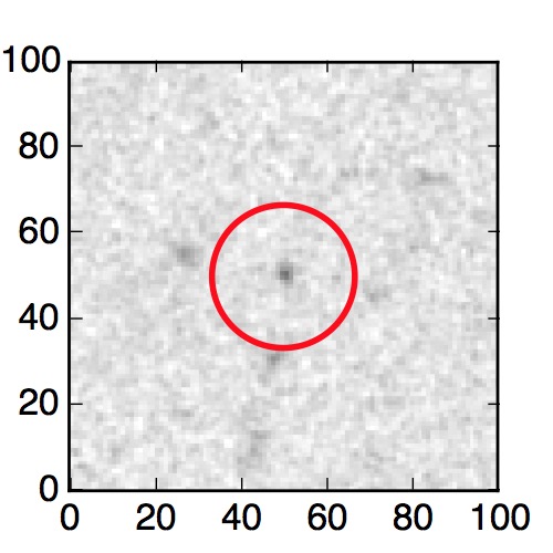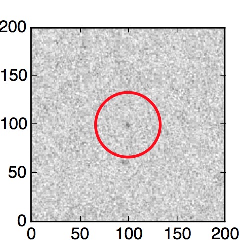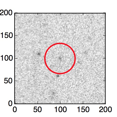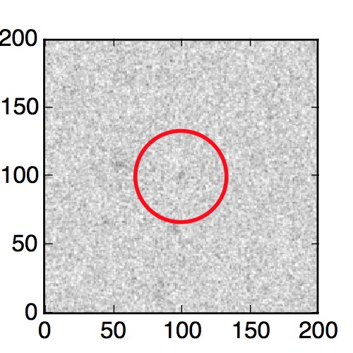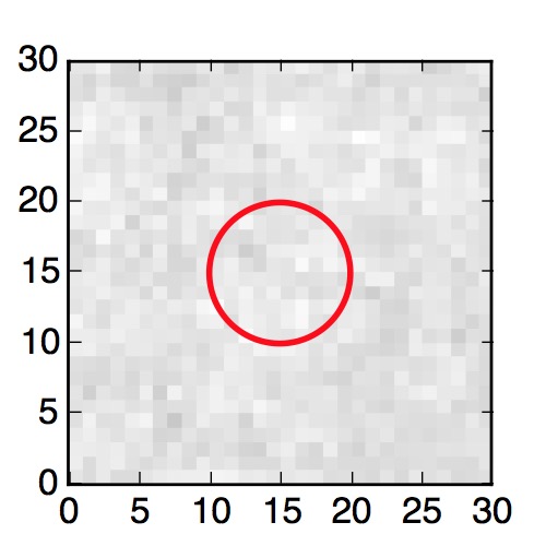 The red circle in the various panels is 1" in radius. The images are 6"x6".