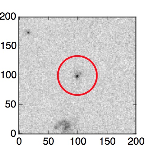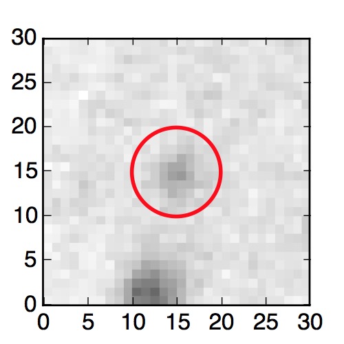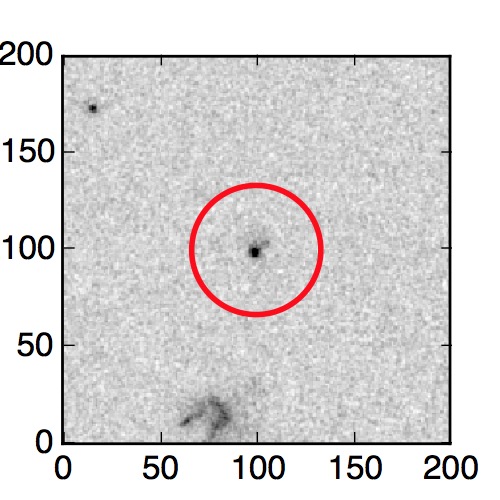 The red circle in the various panels is 1" in radius. The images are 6"x6".