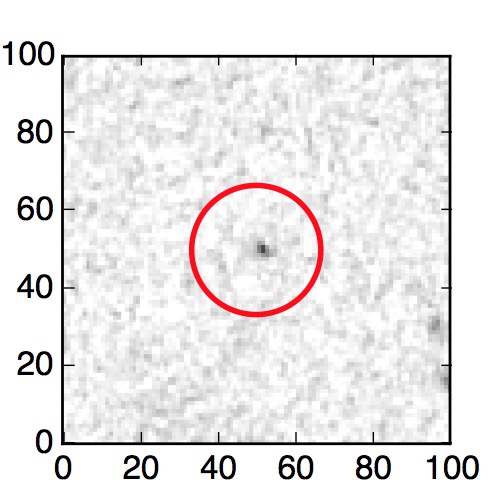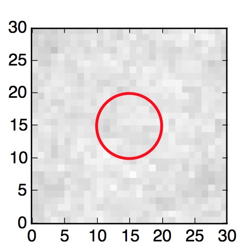 The red circle in the various panels is 1" in radius. The images are 6"x6".
