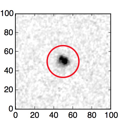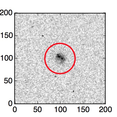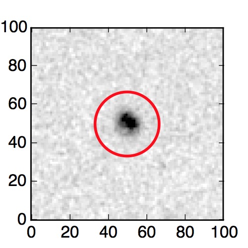 The red circle in the various panels is 1" in radius. The images are 6"x6".