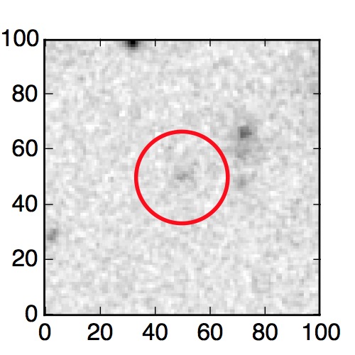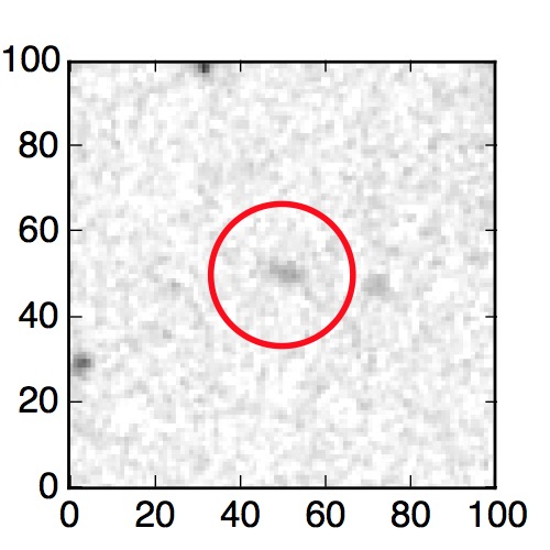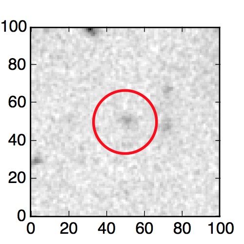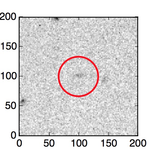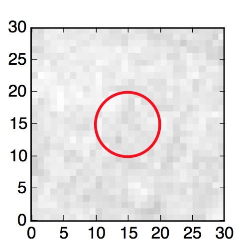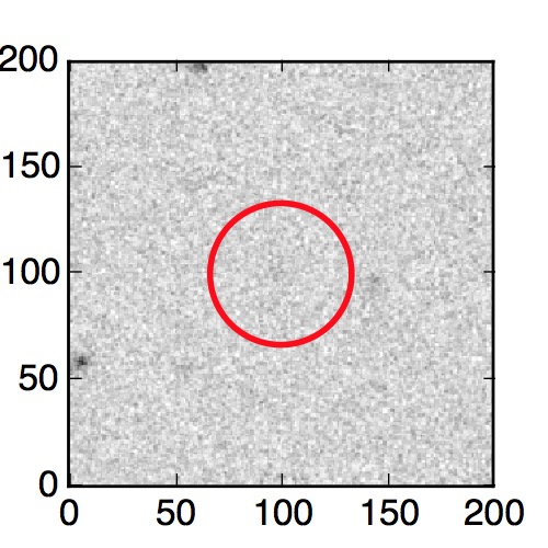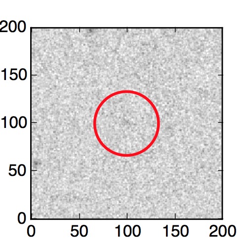 The red circle in the various panels is 1" in radius. The images are 6"x6".