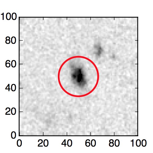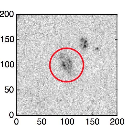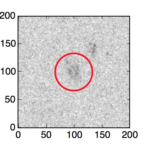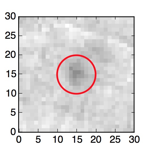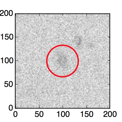 The red circle in the various panels is 1" in radius. The images are 6"x6".
