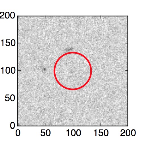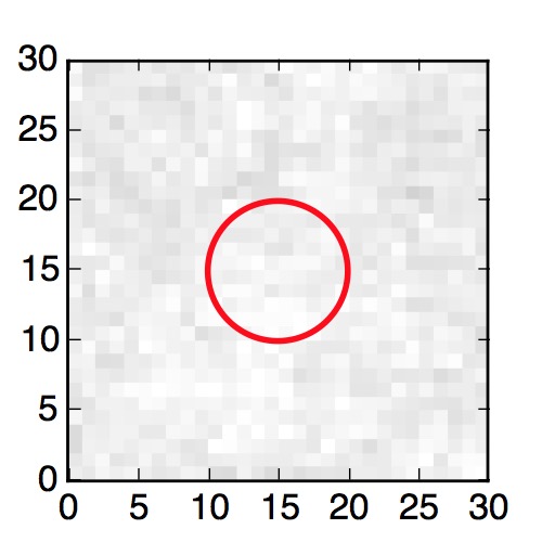The red circle in the various panels is 1" in radius. The images are 6"x6".